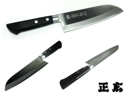 本鍛造 黒打 船行包丁 ●和型の三徳包丁で、肉、魚、野菜どれにも使用できる便利な万能包丁 舟行(ふなゆき)包丁は、漁師が漁の時に船上で使う事が多かった包丁で、刃が薄く軽いので取り回しが良く、家庭でもこれ一本あれば事足ります。 ・両刃 刃長:約165mm ・刃幅:約45mm(最幅部) ・刃厚:2〜4mm ・全長:約310mm ・重さ:約140g ・鋼:安来鋼青紙 ・柄:朴
