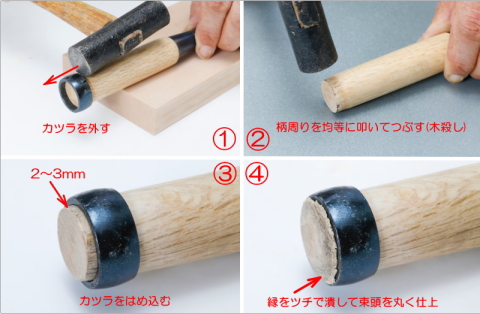 叩用 のみ空柄 赤樫 ・桂を下げて束頭を直ぐ使いに調整してあるので、面倒な桂下げの作業が不要。 桂を叩かないので刃先に打撃力がよく伝わり、桂も崩れず柄が長持ちします。 ・長さ:約150mm 叩き用(中厚・厚用)
